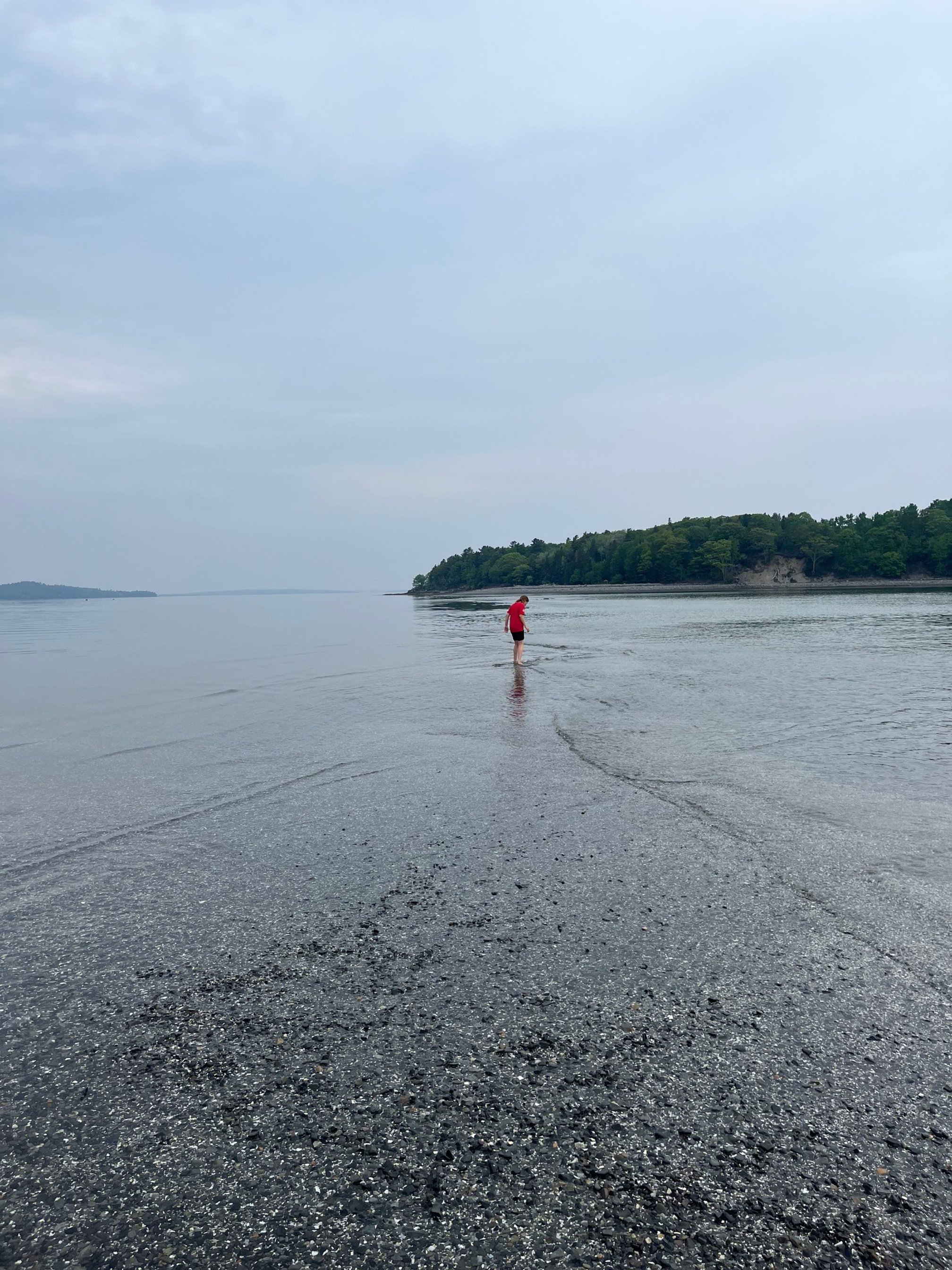 My daughter waiting for the land bridge to Bar Island to slowly reveal itself