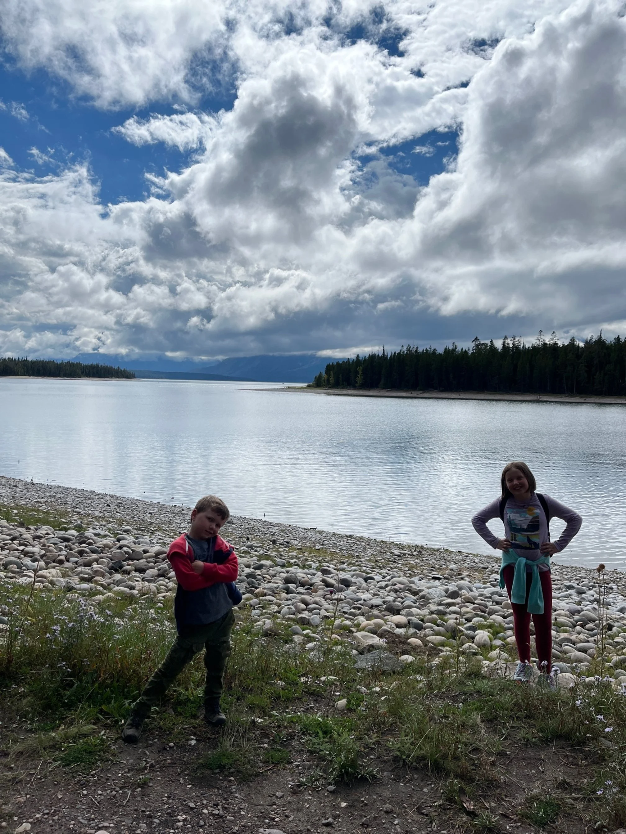 The Camping Kiddos playing in the lake on the Colter Bay Lakeside Trail
