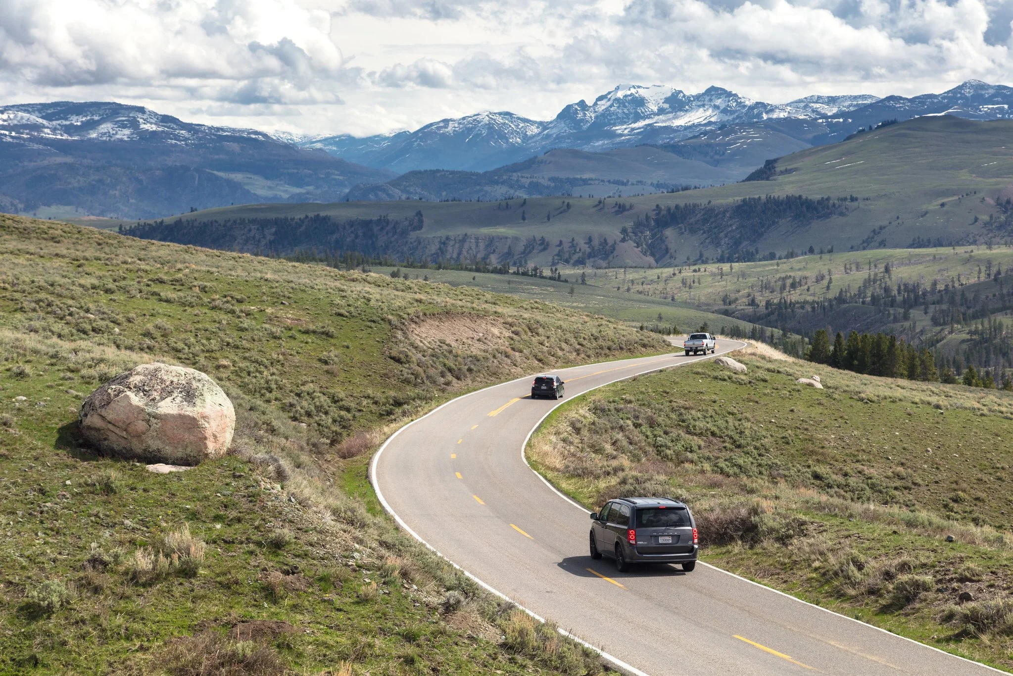 Cars on the Grand Loop Road heading south towards Canyon Village